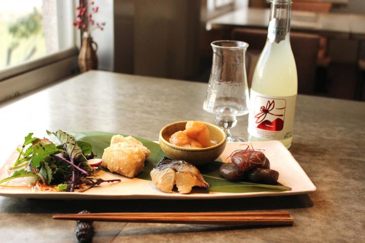 初めてお店を訪れるなら、まずは「おばんざい盛り合わせ」(3種盛り700円、5種盛り1200円)をおすすめします。おばんざいの内容は日替わり。この日は、鰆の幽庵焼きや里芋の竜田揚げなど、伝統的な日本食にひと手間加えた料理がお皿に並びました。 ビールに国産ワイン、焼酎など、バラエティに富んだお酒を揃えていますが、特に力を入れているのが季節ごとに種類が変わる日本酒です。南雲さんのおすすめは、神奈川県海老名市の泉橋酒造で作っている「とんぼスパークリング」(250ml、1450円)。シュワシュワした微発泡純米にごり酒で、意外とチーズとの相性もいいのだそうですよ。