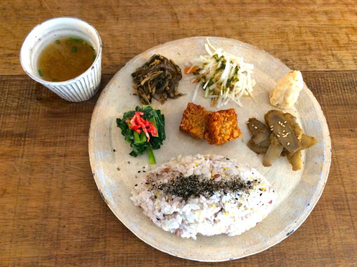 ランチタイムには、6種類のおばんざいと季節の彩りご飯がセットになった「おばんざいプレート」(1000円)と、おそばと2種類のおばんざいがいただける「おそばプレート」(1000円)の2つを用意しているので、お好みでどうぞ。