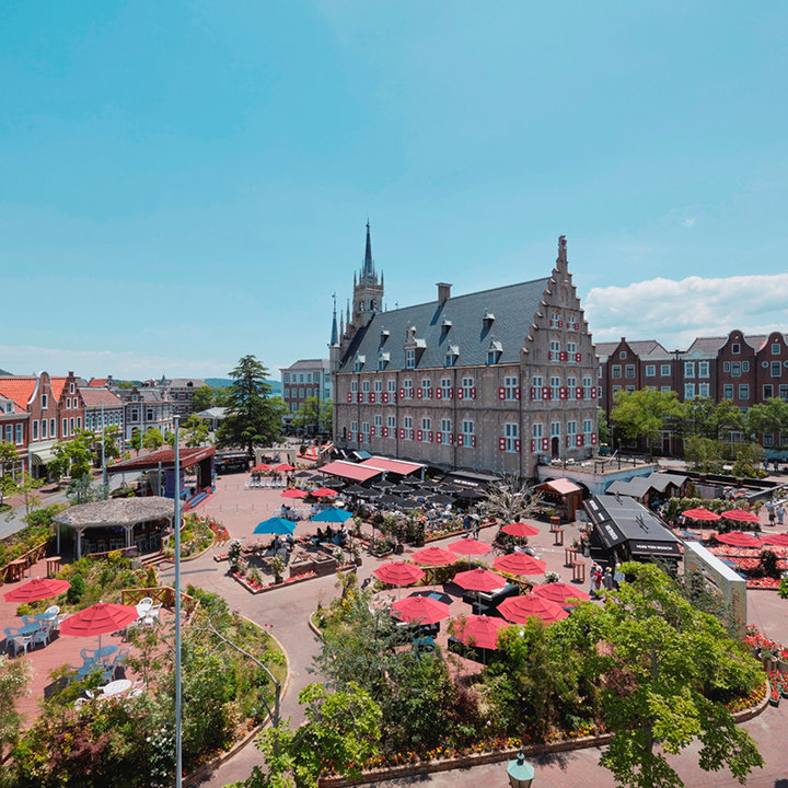 ヨーロッパの街並みを再現した日本最大のテーマパーク。チューリップやバラなど一年中季節の花々を楽しめる「花の王国」や冬には世界最大規模を誇るイルミネーション「光の王国」をはじめ、ゲームや音楽など多彩なエンターテインメントが街にあふれています。