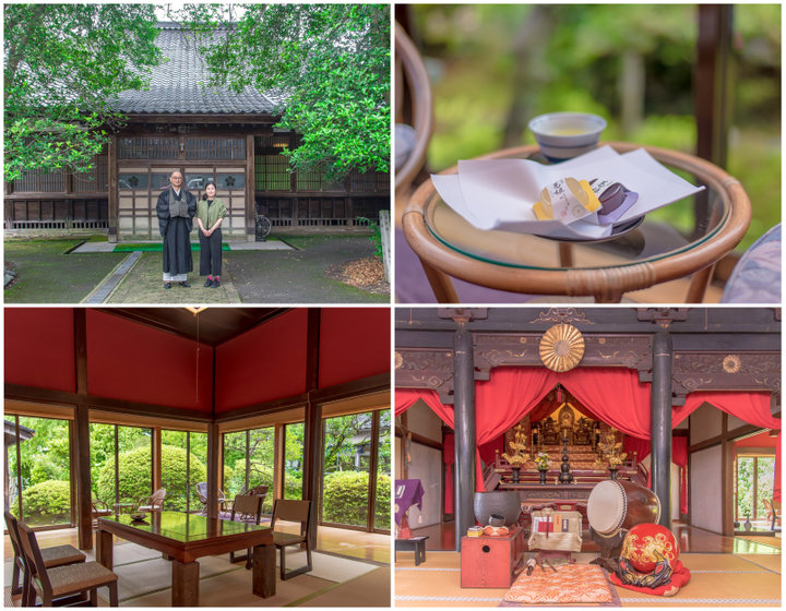 予約をすれば体験できる、和紙の風合いが美しいオリジナルの 「かなざわ風鈴」作り。カラフルな和紙や飾りを選ぶのも楽しく、土田さんが丁寧に教えてくれます。また、寺町ならではの坐禅体験も。宿から歩いてすぐ、お庭の美しい「長久寺」での坐禅体験後はご住職様の講話(お茶とお菓子付)を聞くことができ、気持ち新たにリフレッシュすることができますよ。