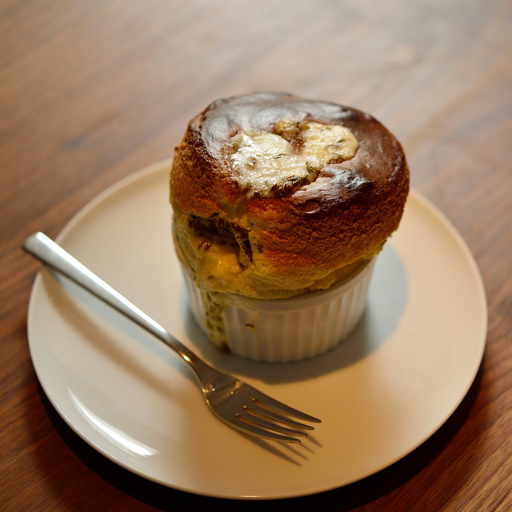 スフレ登場の瞬間は、思わず感嘆の声を上げてしまうほど。圧倒的な膨らみは衝撃的。