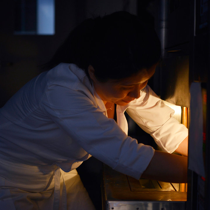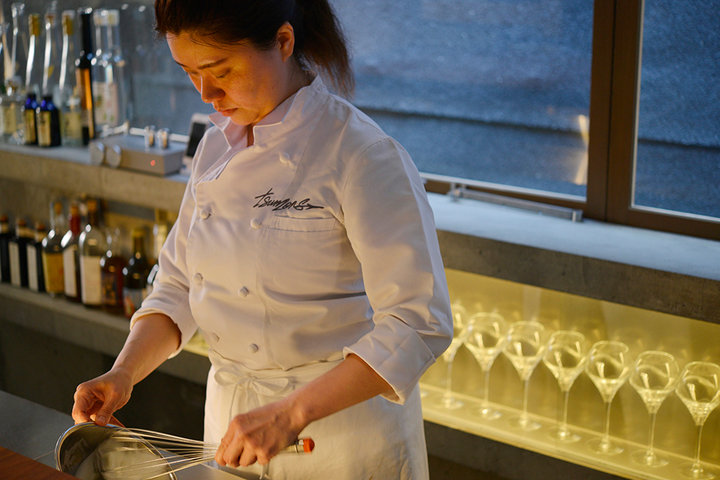 そんな独自の世界観を創り上げるのは、パティシエールでありソムリエールの香月友紀氏。 彼女が作るスイーツの中でとびきりのスペシャリテは、2014年3月のオープン以来、変わらず「スフレ」です。ふわふわでこんもりと膨らんだ、淡雪のように繊細な口どけの「スフレ」と、香月氏が選ぶワインは、口の中で溶け合い、鼻腔で混じり合い、蜜月を迎えます。 その甘美な世界を求めて、県内はもとより県外、時には噂を聞きつけたフーディーな海外ゲストが足を運ぶ『tsumons』。今回はその魅力と香月氏の素顔を、お伝えしたいと思います。