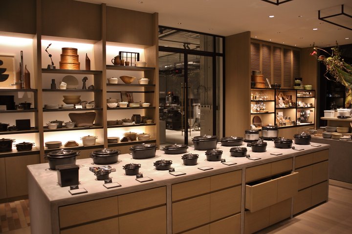 店内にはバーミキュラ以外にも国内外からセレクトした手仕事が感じられる調理器具が並んでいて、オブジェのように美しい品々ばかり。料理に関する書籍が並ぶライブラリーもあり、料理好きならばきっと夢中になってしまいますよ。