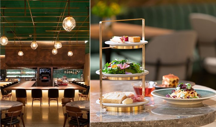 1階奥はカジュアルダイニング「ERUTAN RESTAURANT/BAR(エルタンレストラン/バー)」。シンプルな調理技法で素材本来の魅力を際立たせた、野菜中心の料理が味わえます。日本人としてはじめて、イタリア・ミラノで星付きの栄誉に輝いたシェフが監修するメニューを、モーニングからディナーまで楽しめます。 その隣は、パティスリーやチョコレートを販売するスイーツラボ・ブランド「RAU」。ギャラリーのようにスタイリッシュな内装が印象的です。