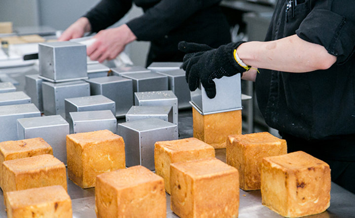 取材時に並んでいたブリオッシュは、定番のプレーンをはじめ、チェダーチーズ、クリームチーズ、ヌガー、サルタナレーズンの5種類。近頃新登場した、高級生食パンも人気だと言います。