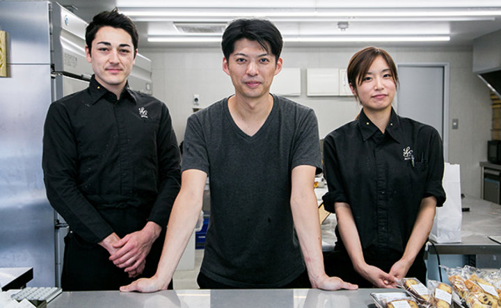 2号店『Prive de Lien』店長の塚本シェフ(左)、オーナーの上原シェフ(中央)、3号店『L’ATELIER de LIEN』店長の田口シェフ(右)。取材時には、3店のシェフにお会いすることができました!