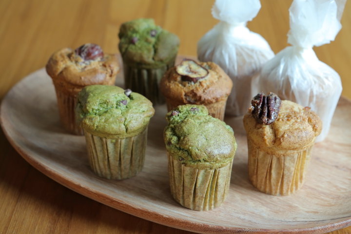 マフィン350円~。焼き菓子はテイクアウトもできる
