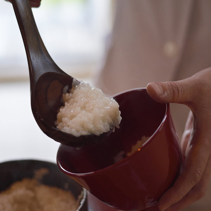 開業から4年目には2階に『万 分室』をオープン。予約制で粥茶事から着想を得た「粥茶のコース」を提供しています。 「冬の茶室で、湯が煮えた釜の蓋を開けると、たちまち真っ白い湯気が広がる。暖房がない時代、寒さは今と比べものにならないほど切実で、だからこそ湯気だけでもありがたく、ご馳走になる。そんなことに想いを馳せながら三分炊き、五分炊き、七分炊きと、米粒が粥になるのを味わって頂く。粗食ですが、感性を研ぎ澄ませ、繊細に味わうことで見えてくるもの。茶の心を今に伝える上で、作法や型より前に、まずはその感動を知って頂きたいんです」と徳淵氏。 日々移りゆく日本の四季の中で、その時々の景色を見つけて心が豊かになるような時間を過ごしてほしい。目には見えない優しい季節の風を感じるようなひと時を。極上の茶葉や茶器などの道具類はもちろん、BGMにまで心を配った「現代の囲炉裏」には、主のそんな想いが込められています。静かに自分自身と向き合う時間、気の置けない仲間との何気ない時間を、より豊かに。1服の茶を通じ、真に伝えたいのはそんな場や時間のあり様なのです。