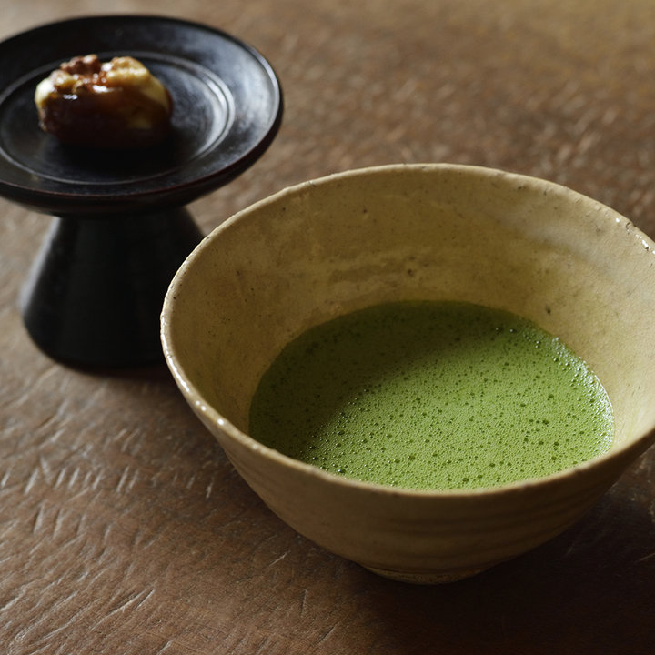 ナツメとクルミ、発酵バターを合わせたお茶菓子。濃厚なコクと凝縮感のある甘みが抹茶に合う。