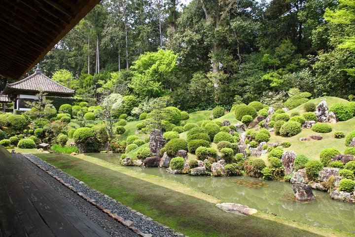 白砂が美しい枯山水庭園「無量寿庭」、落差15mの滝と豪快な石組みが印象的な池泉回遊式庭園「清浄庭」、平成の小堀遠州とも称される北山安夫氏による2つの庭園も見事。そのほか、地獄の世界をわかりやすく示した十六図「地獄極楽図」も必見です。