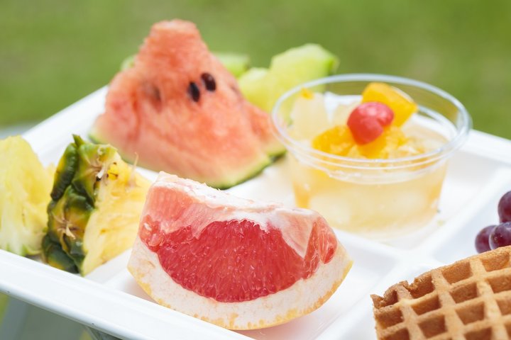 ランチバイキング大人1500円。土・日曜、祝日の11時から数量限定開催(はままつフルーツパーク・7月撮影)