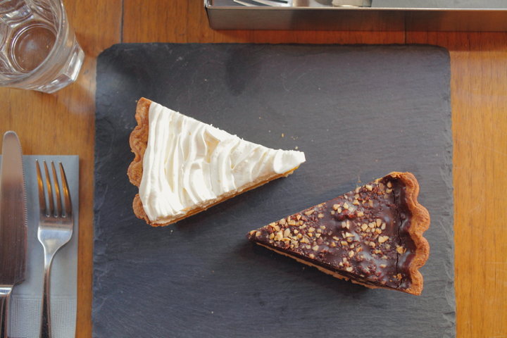 アメリカンサイズが嬉しいスイーツメニューもあります。定番は濃厚でナッツのカリカリ食感がよい「生チョコケーキ」、季節によってはなめらかなパンプキンペーストにホイップクリームがのった「パンプキンタルト」も。それぞれの風味を心ゆくまで楽しめます。 イートインもテイクアウトもできるサンドイッチ、月替りのメニューも充実し、つい立ち寄りたくなるお店です。その日の気分で種類豊富なパンやメニューをいただいてみては。