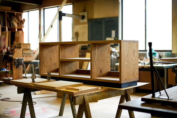 テーブルや椅子、シェルフなどのオリジナル家具の受注生産を始めたのは、独立から数年後。店舗やギャラリーの内装を丸ごと請け負うこともある。