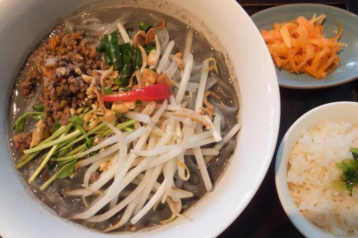 「黒フォー」は、黒ゴマと豆乳を使った濃厚でまろやかな味わいがたまりません。トッピングの牛そぼろは、黒ゴマ、椎茸、きくらげ、ごぼうなど、ミネラル豊富な”黒の食材”を使い、和風テイストな味に仕上げています。 ご飯のサービスもあるので、最後に残ったスープにご飯を入れて「雑炊風」にして食べてみては。フォーとはまた違った食感も楽しめ、お腹もいっぱいになりますよ。