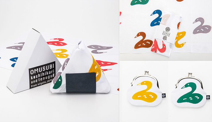 左:新潟のおむすび(2530円) 右上:藤岡染工場の手ぬぐい(1650円) 右下:はくちょうのがま口(4180円)