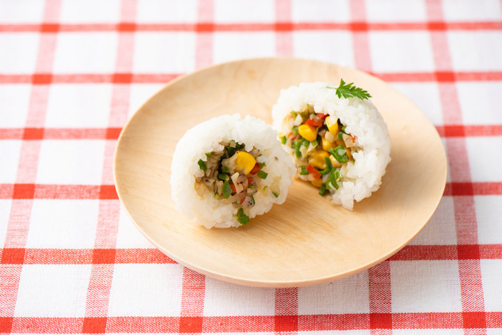 カラフルな具材がぎっしり「うずめ飯風おむすび」