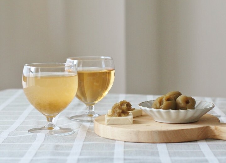 梅酒作りの記事でも紹介しましたが、梅酒を仕込み1年ほどで、漬け込んだ梅を取り出します。この梅の実を使って、にごり梅酒を作るのもおすすめとのこと。種を取り出し、ピュレにしたものを梅酒に入れると味がまろやかになり、飲みやすくなりますよ。 このピュレにハチミツなどで甘味を足して、クリームチーズやハードチーズに添えてみても。ラムレーズンのようなイメージで食材と合わせてみてくださいね。