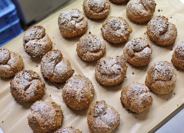 かつての「マルイチ」では洋菓子も作っていて、シュークリームはいろいろな種類があったのだとか。「サロン・ド・マルイチ」でも、ナッツがアクセントになった「3種のナッツのシュークリーム」が名物となっています。濃厚だけれど口どけのよいカスタードクリームがたっぷり入っていて、コーヒーと相性抜群。ほかにも昔懐かしいプリンやおしゃれなエクレアなど、10種類ほどのケーキがあり、テイクアウトもできます。