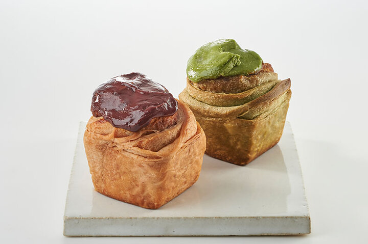 「あんこシナモンロール」・「抹茶あんこ シナモンロール」(各378円)