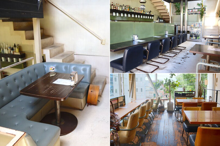 1階はひとりでもゆっくりと楽しめるカウンター席。中2階は少しリッチなラウンジをイメージした空間。そして3階はテーブルやソファでゆったり寛げる開放感あふれる店内で過ごすことができます。店内のあちらこちらに設置されている本棚から、料理の待ち時間や食後に好きな本を読むこともできますよ。