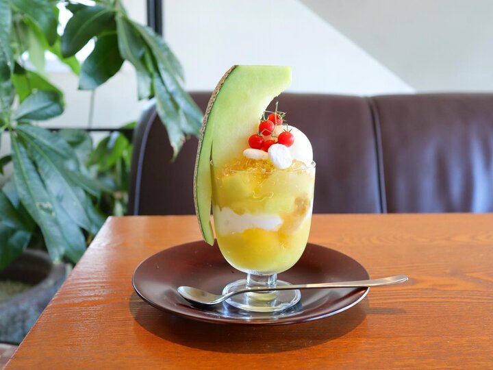 見た目も色鮮やかな「鉾田メロンぎっしりパフェ」は、茨城県の農家から仕入れたメロンを使ったパフェ。グラスの中にはメロン果肉をはじめ、果肉で作ったゼリィ、ギリシャヨーグルト、レモンギモーヴなど、メロンと相性の良い素材がぎゅっと詰まっています。 さらに、青梅ジャムと梅ハチミツゼリーでさっぱりとした甘酸っぱさをプラス。グラスにはカットしたメロンが丸ごと添えてあり、メロン本来の味を存分に味わえますよ。メロンの入荷次第で販売が終了になることもあるので、気になる方は早めの来店がオススメ。