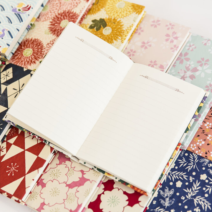 オリジナルの千代紙をあしらった榛原ノート1540円