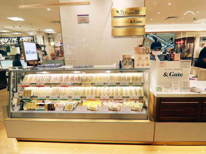 神戸阪急本館地下1階の食品売り場の一角に、サンドウィッチ専門店「& Gute」があります。母体の「A-1 BAKERY」は1948年創業のパンの人気店。大阪を中心にパン店をはじめ、レストラン、カフェなども展開し、サンドウィッチ専門店は大阪・梅田に続き2号店目となります。 店舗にズラリと並ぶサンドウィッチは約20種類。なかでも洋菓子のまち・神戸にちなんで開発したという、ワンランク上のフルーツサンド「フルーツウィッチ」は、グループ店の中でも買えるのはココだけだそうです!