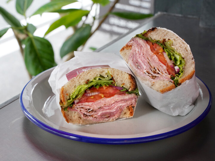 ボリューミーなポーク パストラミのサンドイッチ