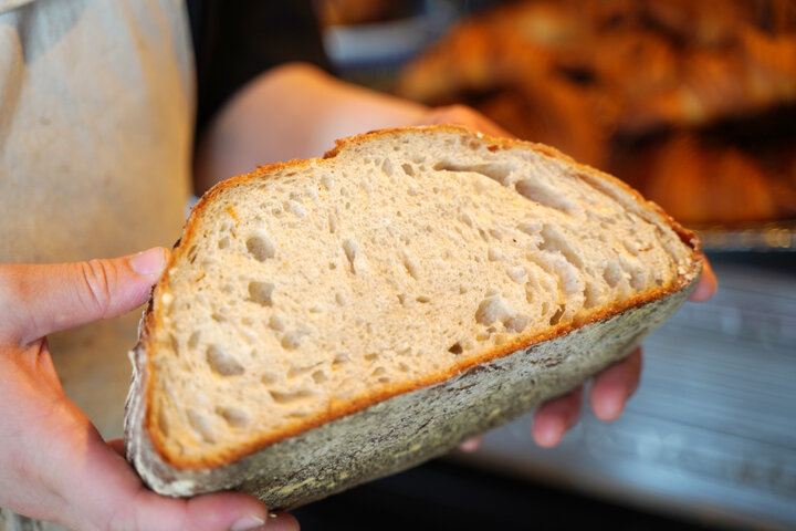 「THE BAKE」のパン ド カンパーニュは、酸味を抑えて焼き上げているのがポイント。クセがなく食べやすいので、カンパーニュの初心者や苦手な人も食パン感覚で味わえます。 同じ配合ながら焼く形によって、食感がちょっぴり異なるのも魅力です。もっちり好きなら丸い形を、軽めが好きならアーモンド形のロングをぜひ。1/2カットや1/4カットも用意しているので、ひとり暮らしでも気軽に買えます。