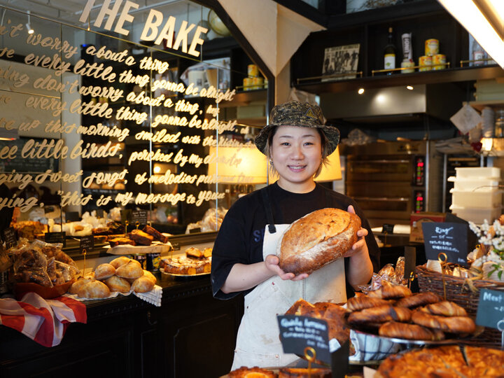 各線三宮駅から歩いて約10分の場所にある「THE BAKE(ザ ベイク)」は、神戸の人気ビストロ「LE BOOZY(ル ブージー)」で働いていた山畑ゆりさんが店主を務めるブーランジェリー。「こんなパン屋さんがあったらいいな」を叶える自分たちらしいスタイルを大切に、ビストロの強みを活かしたオーソドックスでおいしいパンを提供しています。