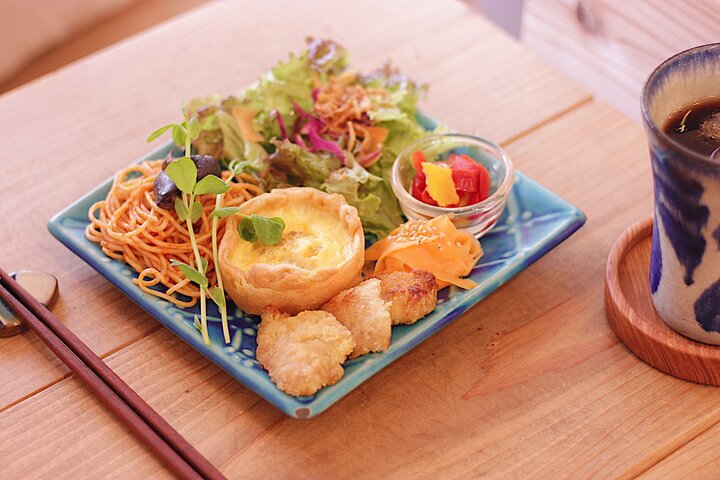 おやつだけでなくご飯も充実しているので、ランチにもおすすめです。中でも人気なのが「キッシュプレート」。ミニサイズのキッシュは5種類の中からお好きなものを選べます。キッシュは具だくさんで、ふわふわの絶品! 自家製クミンドレッシングがかかったサラダやごま油がきいたニンジンのナムル等、副菜も全てお店で手作りされた健康的なプレートです。 アイスコーヒーは、大阪・高槻にある「島珈琲」のビターブレンドを使用。濃厚で豆の味をしっかり感じられますが、後味はあっさりしているのでゴクゴク飲めてしまいます。