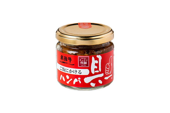 飛騨牛を100% 使用した、ごはんのおともに、おむすびの具にぴったりの逸品。ステーキ専門店「キッチン飛騨」の人気ハンバーグを自宅で気軽に味わえるベストセラー商品です。