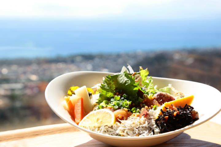 ”湘南ひらつか逸品プロジェクト”でフード部門グランプリに輝いた「相模湾の地魚しらすボウル」は、五穀米のうえにたっぷりのしらすと地魚、ひじきや湘南野菜が盛りつけられた贅沢なひと皿。 「料理人はつなぎの役割だ」という言葉どおり、食材を無駄なく使い、手間をおしまない、こだわりの料理は、“旬な地元食材”と“作り手の想い”を大切につくられています。