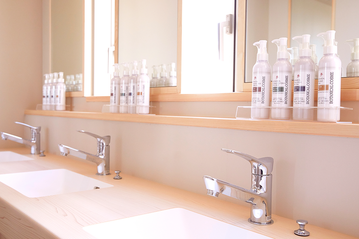 もちろん、宿泊に必要なアメニティや設備も充実しています。 ナイトウェア(館内着)・タオル・バスタオルが各1点ずつ支給されるほか、男女別のシャワールームには、シャンプー・コンディショナー・ボディーソープを設置。やはり男女別のパウダールームのうち、女性用にはクレンジング・洗顔フォーム・化粧水・乳液まで完備しています。 その他、歯ブラシやカミソリ・櫛などのアメニティ類は、フロントでお一人様各1セットずつもらうことができます。