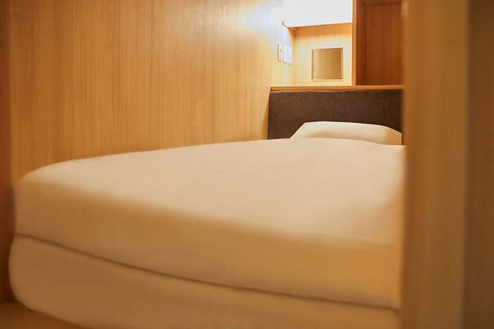 『奈良の森ホテル』。国産檜(ひのき)をふんだんに使用した、至福の眠り体験が味わえるカプセルホテルです。吉野産を筆頭とした国産檜を、寝室・エントランス・廊下の天井などに贅沢に使用。檜の爽やかな香りに包まれながら、オーダーメイドベッドをはじめとする様々な快眠グッズを取り揃えた空間で、ゆったりくつろげます。