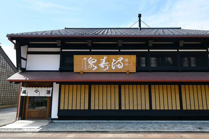 「北前船廻船問屋 森家」から海側へ2分程歩くと「満寿泉」と書かれた看板の建物が。こちらは富山の銘酒「満寿泉」で知られる桝田酒造店が新たにオープンしたお酒の聖地「沙石(させき)」です。2019年にオープンし、約100種類の「満寿泉」が有料試飲できる新たなお立ち寄りスポットとして人気を集めています。 店内の冷蔵庫には普段蔵元しか味わえない「しぼりたて生酒」「古酒」など特別な「満寿泉」がびっしり!こちらのお店は試飲用の木枡を購入し、その枡を使って冷蔵庫内の日本酒を飲むというスタイル。ここだけの味をたっぷりと堪能しましょう。 近くには桝田酒造店の酒蔵もあります。趣ある建物の外観と、軒先に飾られた大きな杉玉は一見の価値ありです。