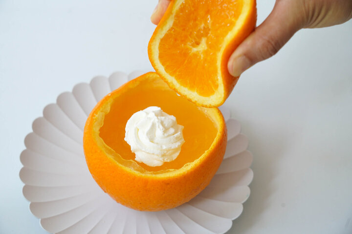 果汁を絞って、ゼリーと一緒にどうぞ