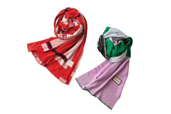 made in YONEZAWAを誇りに、米沢の自然がもたらす四季の風景から着想を得たストールを多数展開する「nitorito」。巻き方によってさまざまな表情を楽しめるのが魅力です。首に巻くだけでなく肩から羽織ってもちょうどいいサイズ感で、秋冬のよそおいに欠かせない1枚になりそう。