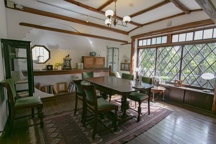 当時の天井や梁などそのままに、インテリアは当時をイメージして置かれたもの