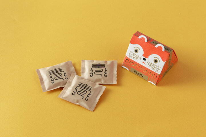 鮮やかで、どこか懐かしい朱色。つぶらな瞳で、すました表情。小さな耳がぴょこんと出ていて、キュンとする愛らしさ。そんなかわいい狛犬がモチーフのこちらは、「魔除け」がコンセプトのチョコレート「CHOCOMAINU(チョコマイヌ)」です。 愛らしいパッケージでは細部にまで「魔除け」を表現しています。例えばモチーフの狛犬や、カカオ柄にアレンジしたサイドの唐草模様は昔から魔除けとして親しまれてきたもの。個包装の袋には縁起のいい「寿」のスタンプをあしらい、幸せを願うデザインを完成させました。 この商品を手がけるのはクラフトチョコレート専門店「埜藝菓(ノギカ)」。「人間らしく幸せな日々を過ごせるヒントは、昔ながらのシンプルな暮らしの中にあるのでは?」との気付きから、人間らしさを曇らせるものを「魔」と見立て、魔除けがテーマのチョコレートを作ったそう。パッケージだけでなく添加物を一切使わないなど、素材でもその想いは表現されています。