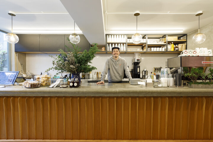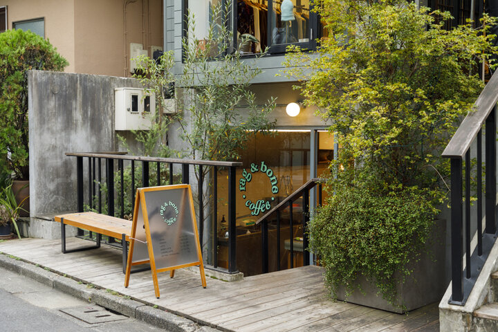 明治神宮駅から表参道方面に向かって徒歩5分。モスグリーンの壁がかわいい一軒家が見えてきたら、ここの地下がカフェ「rag & bone coffee」です。こちらは、ニューヨークで人気のアパレルブランド「rag & bone」の直営店に併設されたカフェ。今年の春、「コーヒーとオープンサンドのお店」として新たにメニューを一新、リニューアルオープンしました。