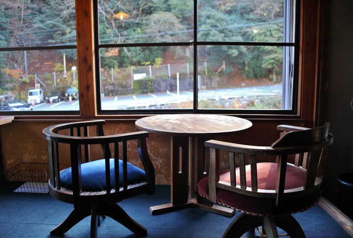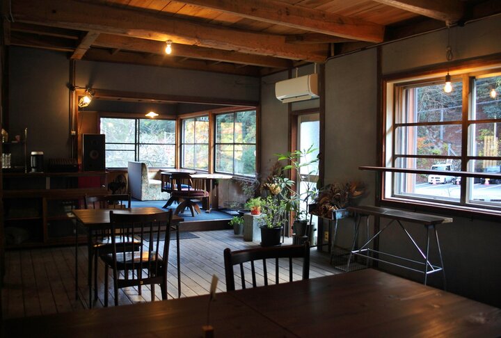 古い建物の味わいを残したカフェ「淵ト瀬」は、川沿いにあるロケーションや建物に惚れ込み作り上げたというレトロな雰囲気が味わえるお店。もともと同じ菰野町内でカフェを営んでいた近藤さんが、レストランやカフェが少なかった湯の山温泉の新たな憩いの場所になれば、とはじめたお店です。