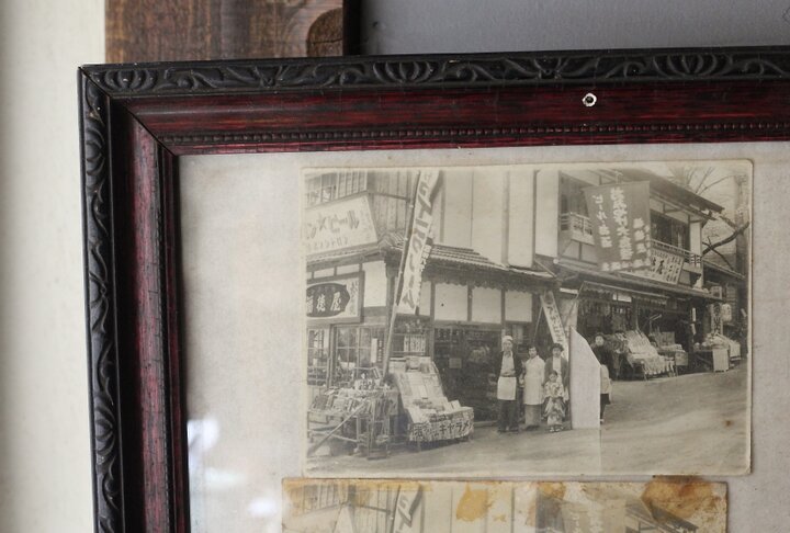 お店がある場所はかつて温泉街一の繁華街で、土産店や宿が軒を連ねていた場所なのだそう。そこに残っていた建物を改装し、建物の雰囲気に合わせて古い建具や道具を使って味わいのある新たな空間を作り上げました。店内にはかつてのお店の様子を写した写真も残っていて、往時のにぎやかさや建物の様子をうかがい知ることができます。