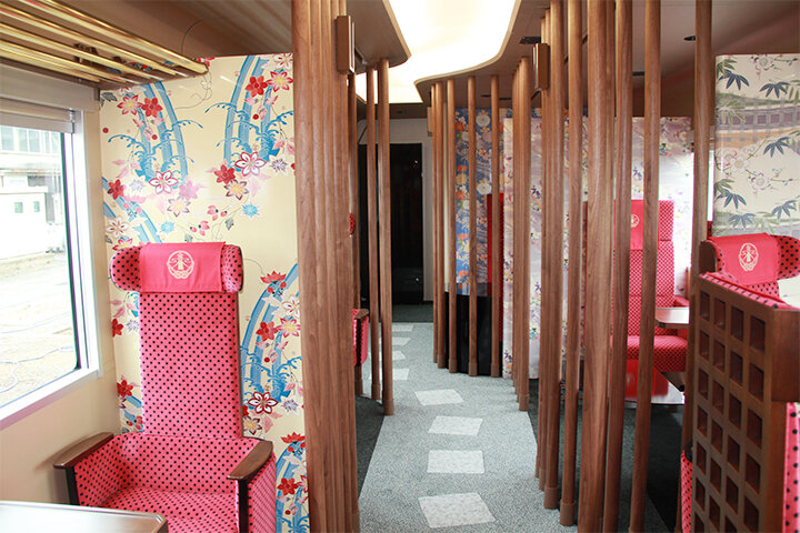 加賀の伝統工芸を車両いっぱいに散りばめた、きらびやかな観光列車「花嫁のれん」