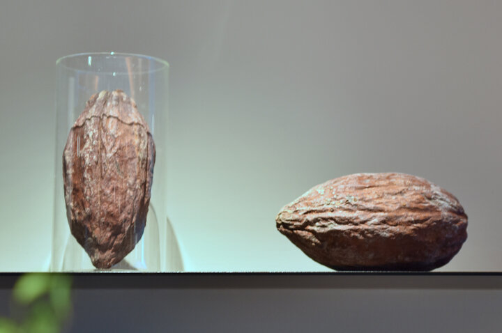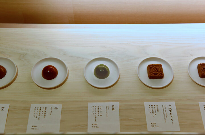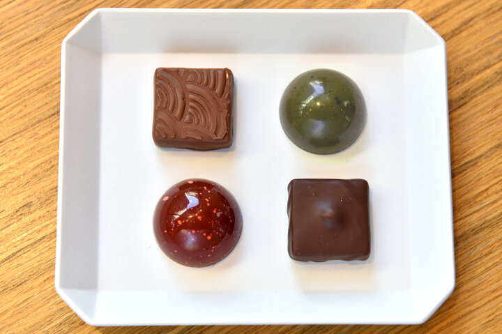 日本らしいフレーバーが楽しいこれらのボンボンショコラ。作るうえで大事にしていることは、フレーバーがカカオの風味を超えないよう、カカオの風味を引き立てるようなバランスにすることというシェフショコラティエの村田さん。カカオ豆と日本らしい素材の組み合わせで、新鮮な驚きとおいしさを楽しめます。