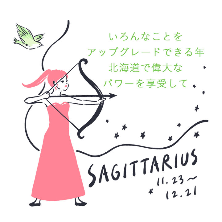 元々、アクティブで冒険心の強いいて座。旅が趣味という人も多いのでは?2021年の旅のテーマは、「いいものに囲まれる旅」。旬の食べ物を味わい四季折々のパワーを感じられる場所を選びましょう。 デュアルライフが加速する「風」の時代。旅へと出かけ、なんとなく居心地がいいなと感じたら、旅先を生活拠点の選択肢として考えてみては。「その土地に出向いたら数十年ぶりのお祭りが開かれていた!」「いつも会えない人と会えた!」などラッキーな出来事に遭遇できたら、その土地から歓迎を受けているサイン。拠点を選ぶ際の指針にしてみて。