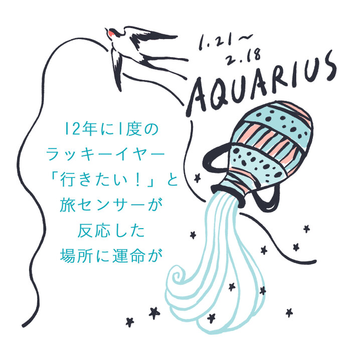 来たる「風」の時代を象徴する星座といっても過言ではないみずがめ座。そんなあなたにとって、旅とは新しい価値観や文化を知り、本当の自分に出会えるという重要な意味合いを持っています。 旅がきっかけになり、自分らしい生き方や晩年を過ごす居場所を見つける可能性も!だからこそ自分の感覚を信じて、ずっと行きたかった憧れの地や雑誌やSNSなどで気になる場所を旅先に選びましょう。 鋭い直観力を持っているみずかめ座。潜在的に心の中のあなたは、どこが運命の地なのかすでに気づいているかもしれません。