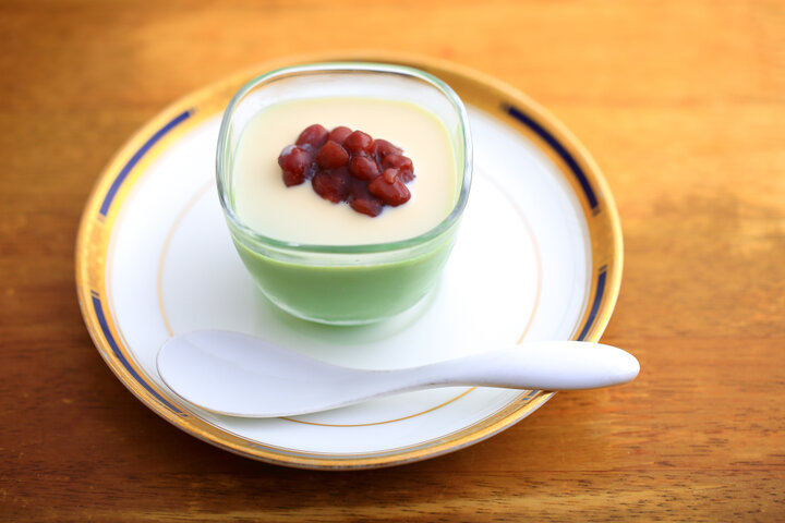 最後のデザートは、豆乳抹茶で作った杏仁豆腐です。デザートもすべて手作りで、何が出てくるかはその日のお楽しみです。 ここまでの全てのメニューで1320円という、驚きのリーズナブルさに何度でも足を運ぶ常連さんも多いのだとか。
