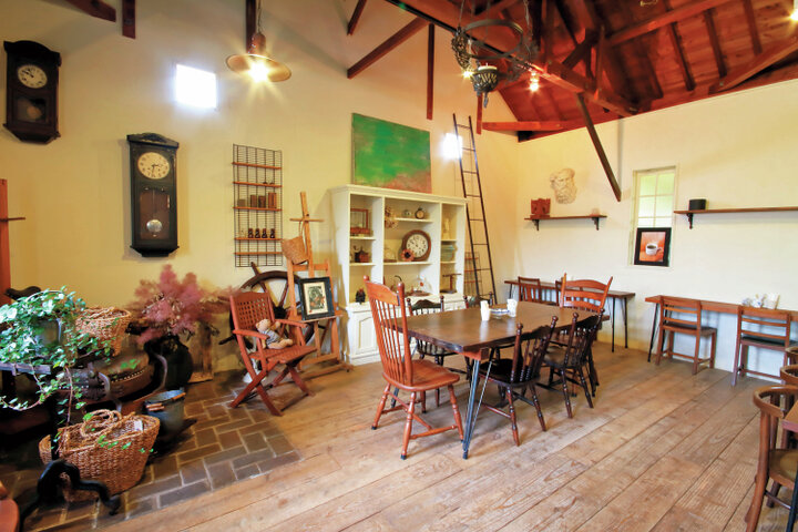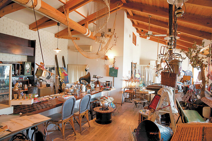 アンティークの家具や、ヨーロッパやアジアの古道具、地元作家の油絵などが置かれ、ジブリのアニメに出てくる店のような雰囲気。併設のカフェでは店主自慢のスリランカカリーが味わえます。