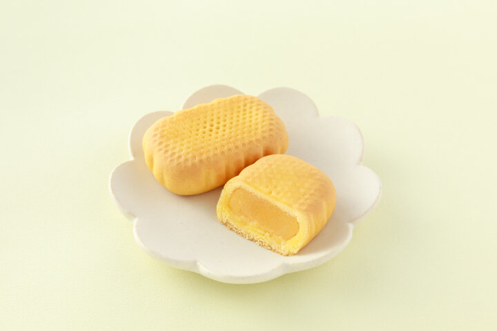 バターとミルクの香り豊かな生地でほっくりした黄味あんを包んだ「母恵夢」。1956(昭和31)年に松山市で誕生して以来、県内外で多くの人に親しまれています。 定番のプレーンをはじめ、春・夏限定の瀬戸内レモン、秋限定の栗など、季節の食材を取り入れた味のバリエーションが豊富にそろい、幅広い年齢層に愛される和洋菓子です。なかでも人気は、食べやすいミニサイズの「ベビー母恵夢」に愛媛特産の温州みかんを合わせた「ベビー母恵夢 愛媛のみかん」。素材を表現したクラフト調のイラストがなんとも愛らしく、思わず手に取ってしまいます。